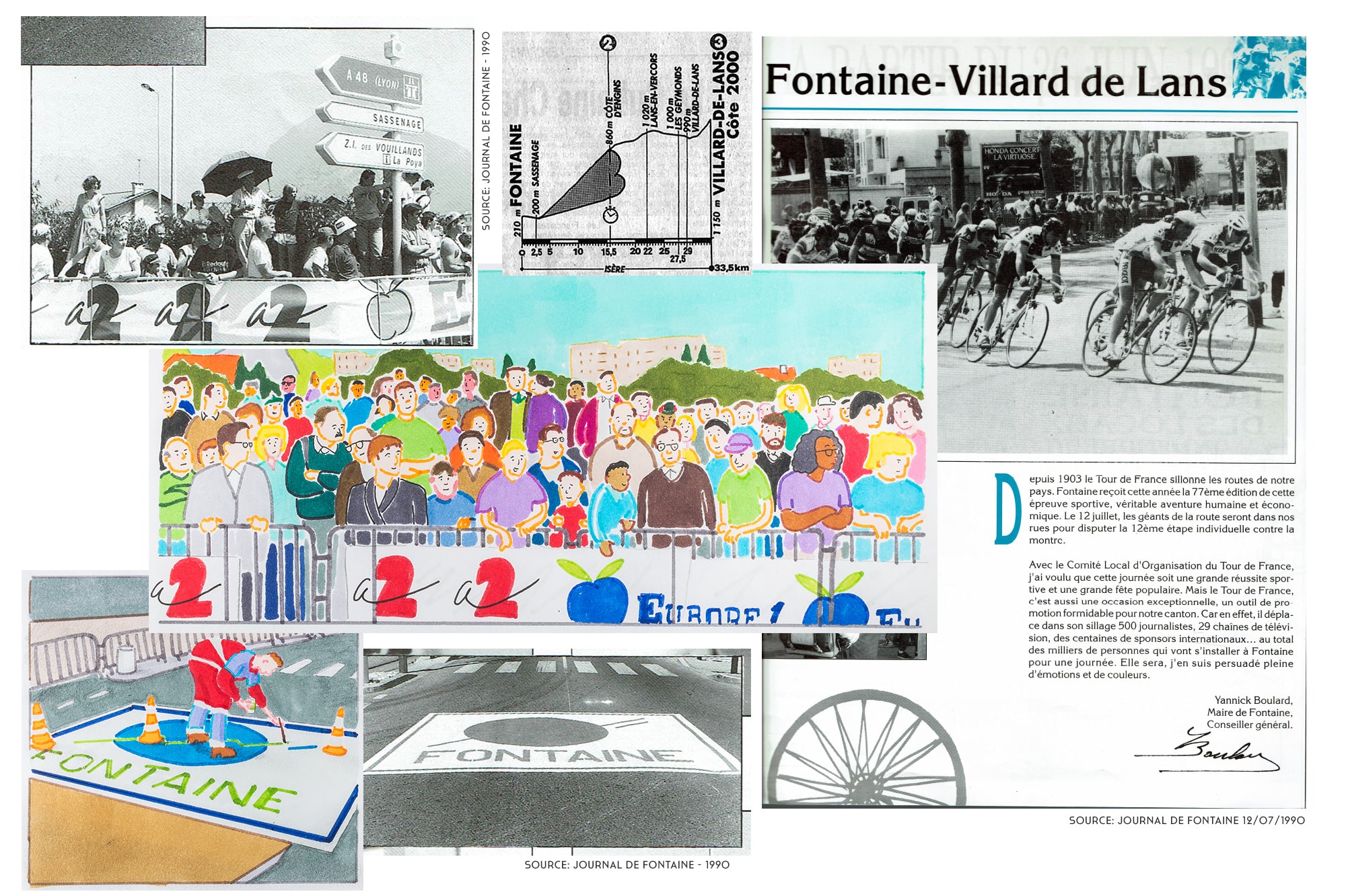 Cette histoire est née d’une anecdote que j’ai vécue enfant : l’installation en grande pompe d’un départ d’étape du Tour de France à Fontaine, commune de la banlieue grenobloise où j’ai grandi..