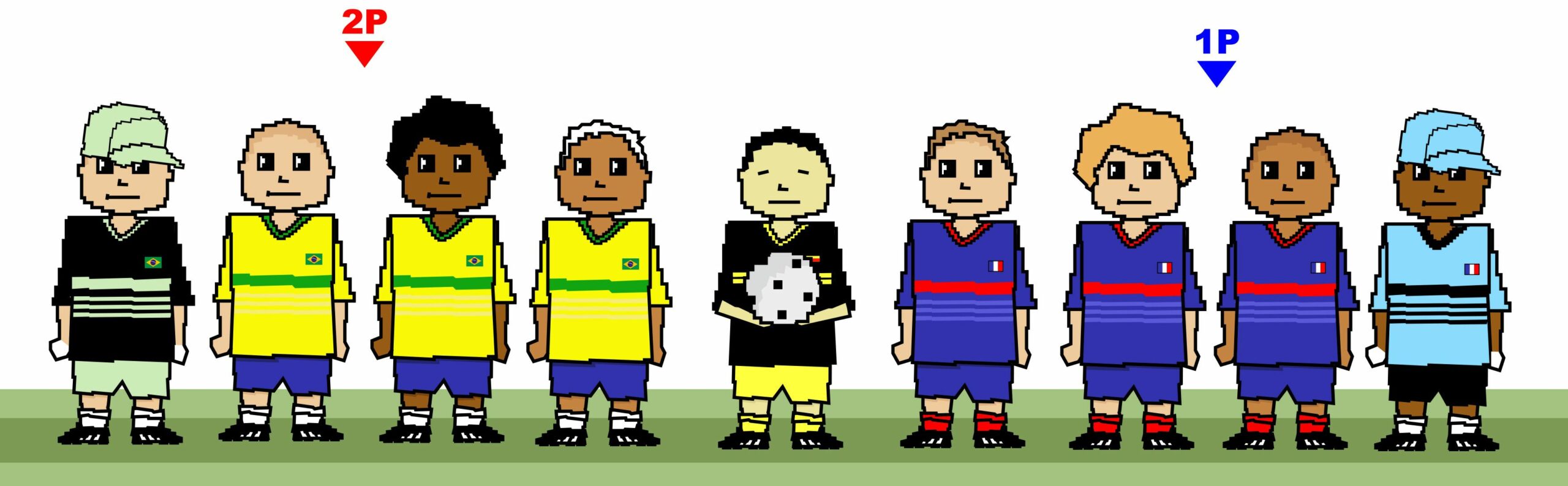 Nous avons choisis l’humour et surtout l’animation flash et vidéo, pour commenter sous la forme d’un vieux jeu d’arcade footballistique les attribues importants de ce nouveau sport.
